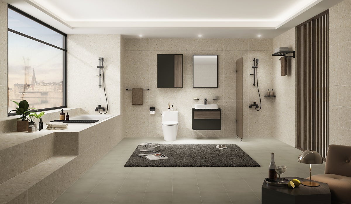 타일은 짙은 회색으로 시공되었습니다. 고급스러운 다크그레이 타일을 벽과 바닥에 세트로 맞춰 시공했어요~ 그래서 통일감 있는 욕실의 느낌을 완성할 수 있었습니다.그레이톤 욕실은 고급스럽고 세련된 느낌을 잘~~ 도와주는것 같아요^^